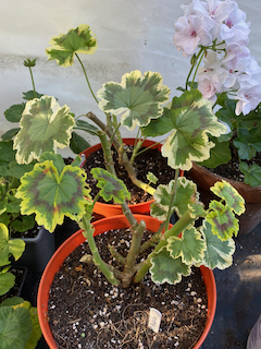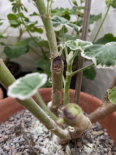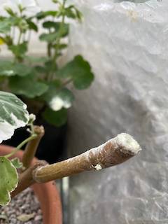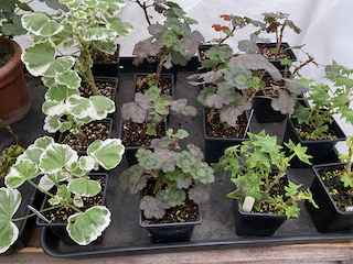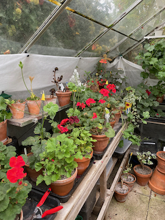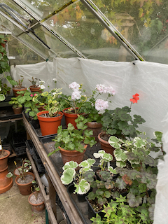 One of the gardening jobs that has concentrated my mind this autumn has been preparing the growing pelargonium collection for the winter. I have been following the Pelargonium Society’s Website Here. advice on reducing the size of the plants so that they will fit into the space available. They recommend to reduce the risk of botrytis infecting plants