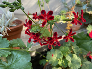 How do we prepare our Pelargonium? Well, we don’t. They slowly get shabbier through winter, but unfortunately, start to grow before the end of winter. Consequently, I must cut back the old stems with new stems growing through them! For some of the weedier sort, I just cut them all the way back, and let them start over.