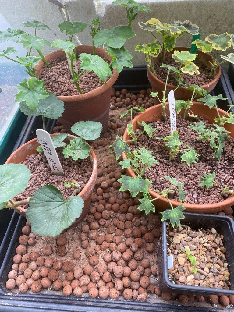 The largest greenhouse is home to my small collection of pelargoniums.
